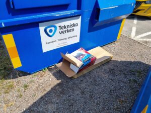 Ta då med soporna hem och antingen vänta tills containern är tömd eller använd återvinningsstation vid Missionskyrkan eller Malmens återvinningscentral.