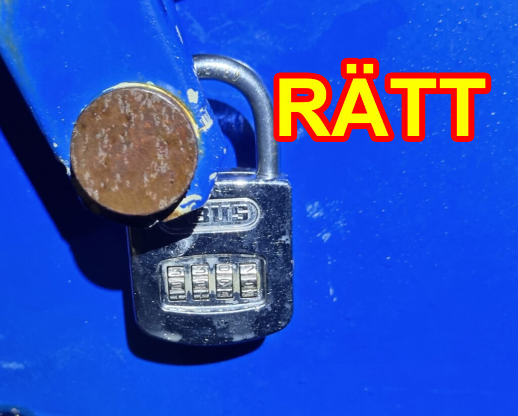 Det är av yttersta vikt att framsidan på hänglåset där kombinationsnummret finns är vänd utåt.